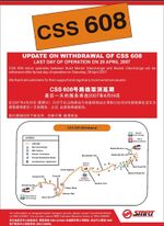 On 3rd November 1997, with the implementation of the Travel Information System by the authority, the remaining 5 CSS services were then re-numbered to CSS 602, 603, 605, 607 & 608 respectively.